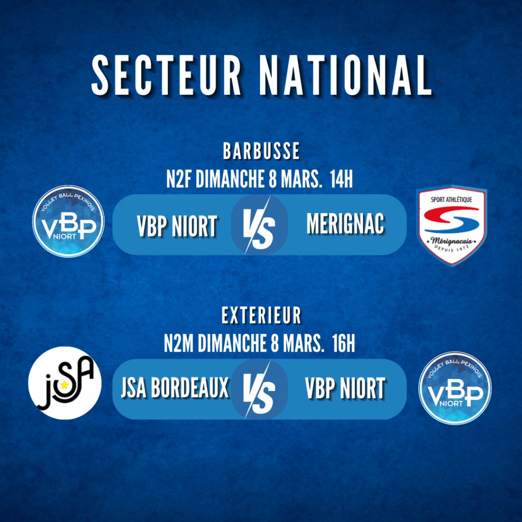 Accueil Dernières actualités https://www.helloasso.com/associations/volley-ball-pexinois-niort/evenements/1ere-nuit-du-volley-2026 Le programme du week-end Les résultats de nos équipes week-end du 28 février et 1er mars 2026